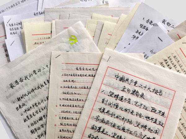 本次活动,每名党员职工分段分条推荐并把党的二十大报告中让自己最受感动、最受启迪、最受鼓舞、最受激励的原文,用笔抄写到纸上,每人最少10条,不设上限。用脑思考、用手抄,手脑并用,学习更高效。经统计,共计523名党员职工参与,累计推荐金句5530条,最终公司党委择优评选出19个河北四建给予表彰奖励。(党委宣传部)