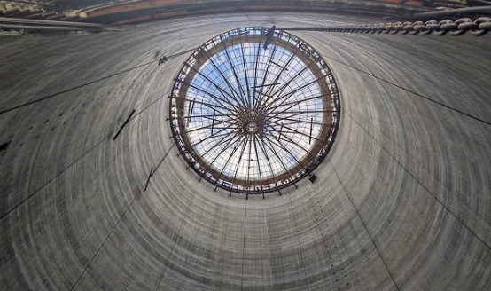 体系设计优化,拼装提速。“钢筋混凝土筒仓锥壳顶板架空支撑施工工法”依托粮食类筒仓工程,筒仓建筑高度高达50米,内径26米,仓顶设计为锥壳顶、平顶双层结构,斜锥壳板厚0.2米。以往筒仓仓壁一般采用滑模施工,锥壳顶板施工复杂,一般采用H型钢组装成圆柱形核心筒、外辐射钢桁架平梁的方式组装成支撑平台,重21.9吨,用钢量大,制作成本高;节点连接采用焊接,拼装速度慢,无法满足群体筒仓的周转时效。分公司针对传统做法的弊端,组织科研小组,专项研究,破解难题,最终形成了空间钢桁架——拉索组合结构支撑体系。该体系摒弃了3.2米直径的圆柱型核心筒,采用直径2.6米的伞状中心筒,通过五道环梁环向拉接,无需设置斜撑,原结构减轻将近1吨,节约了制作成本,而且承压能力更强。重点节点还改用了高强螺栓连接代替焊接,拼装速度明显提升,施工速度更快。
