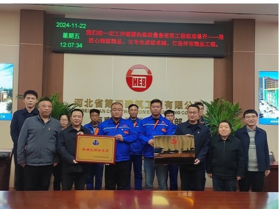 验收组实地查看了施工现场、智慧化中心、基坑气膜、党员活动室、职工食堂等区域,对项目整体情况进行了全面了解。在会议室,项目党支部书记袁世超从强化班子建设、统一思想共识、抓好队伍建设、党建与生产同频、夯实廉政建设、党建带动群团以及弘扬河北四建等七个方面进行了详细汇报。验收组认真查阅了《党支部工作手册》、各类台账等相关资料,并提出改进建议。经验收组成员共同审议,项目以高分顺利通过集团“党建示范点”“精神文明示范点”验收。
