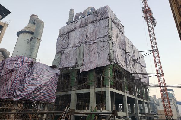 三分公司辽宁山水工源项目生料磨主体提前8天顺利结顶