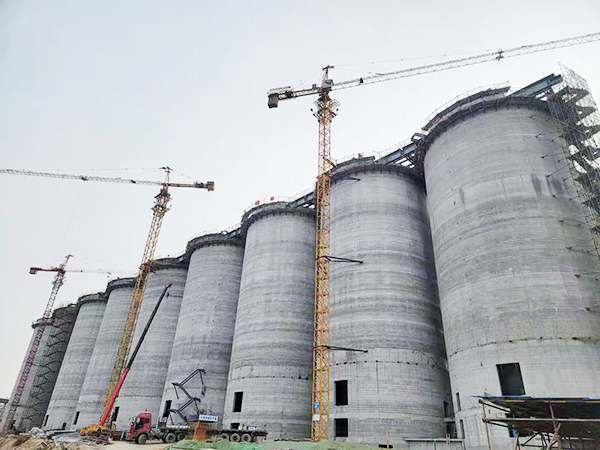 2月28日,A9筒仓准备滑模,作业工人冒雨加班仅用4天完成滑模机具的组装。3月16日,A1筒仓钢梁开始吊装,项目班子、安全员以及监理、甲方的项目负责人集体旁站监督,上午9点准时进行260吨履带吊的试吊,确认无问题后仅用3小时完成主梁的倒运,随即开始吊装。3月27日,A9筒仓仓顶环梁浇筑完成,距离A线全线贯通迈出关键一步。4月17日,项目部率先完成A9筒仓与M101转运站的轴线交接;4月18日,A8筒仓仓顶板浇筑完成,从压型钢板安装到浇筑完成只用了3天时间,标志着A线筒仓全部封顶。随后全面进入设备安装阶段,项目部顶住中央环保组进入铜冶镇环保检查的压力,一手抓安全文明施工,逐项落实各项环保要求;一手抓设备安装进度,加班加点赶工期,提前两天完成甲方确定的工期节点。