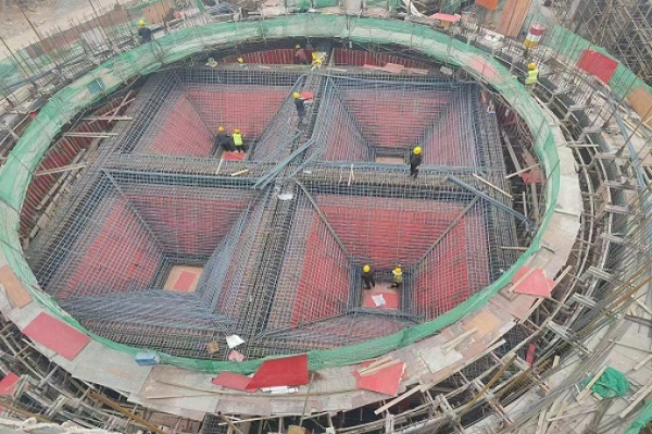 尽管工期紧张,但项目部始终坚持进度与质量“齐抓共管”,坚决落实“逢建必优”质量目标要求,严格执行施工工艺标准,严细管理、精心施工,把“工匠精神”融入到施工的每一个环节。在施工过程中,管理人员坚持24小时旁站管理,测量钢筋的纵向、水平间距以及搭接长度,同时制定混凝土工程施工方案,安排质检员、试验员严格测量每罐车混凝土的入模温度、塌落度。混凝土浇筑完成后及时覆盖薄膜、棉毡,做到保温保水,强度不达标不上人、不拆模。